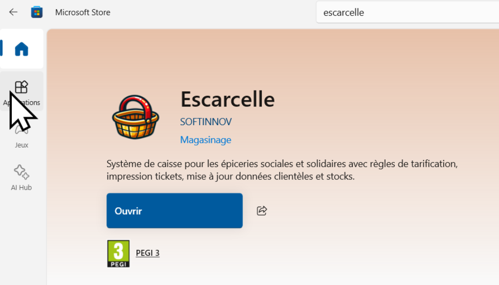 Une fois le Store ouvert, tapez “escarcelle” dans la barre de recherche. L’application devrait apparaître avec un panier doré et une anse rouge. Cliquez dessus pour l’ouvrir puis installez-la.
